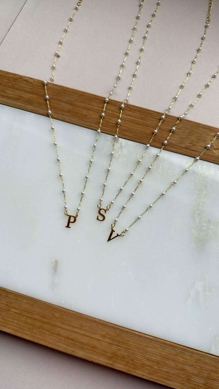 Colar mini pérolas inicial P folheado a ouro 18k- My Acessórios